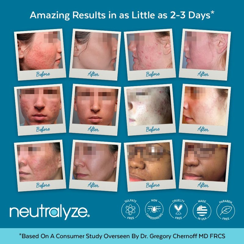 - LOVE IT OR LET US KNOW: As a family-owned business, your satisfaction is our guarantee. Neutralyze is a dermatologist-recommended treatment for acne vulgaris and related skin issues. USA-made in a certified cGMP/SOP compliant facility, 100% fragrance-free & cruelty-free (never tested on animals). No parabens or sulfates.