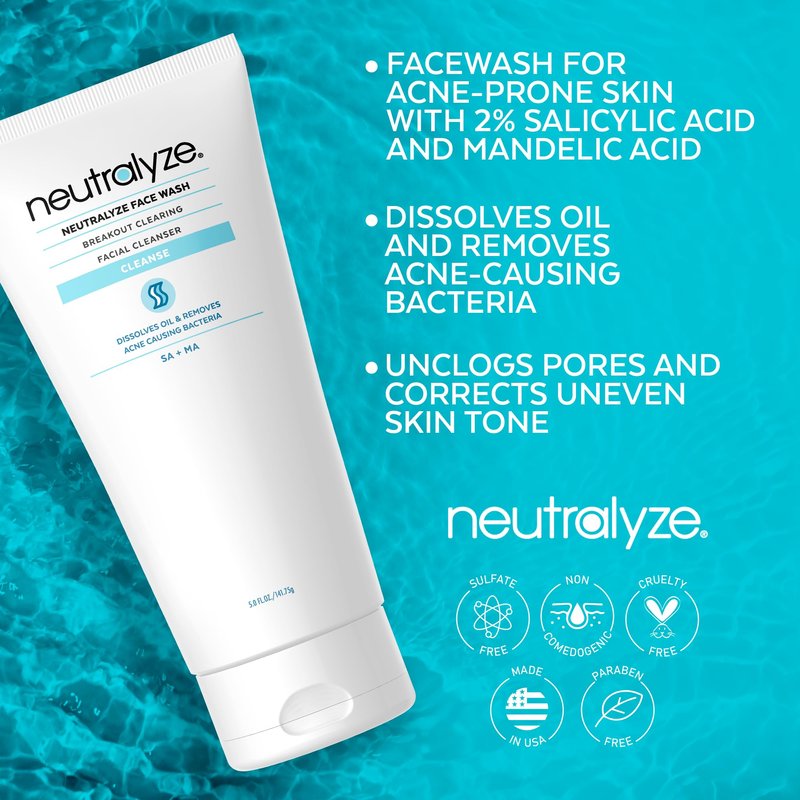 - MAXIMUM STRENGTH FACE WASH FOR MODERATE TO SEVERE ACNE: Give your skin the peace it deserves with Neutralyze Acne Face Wash, a maximum strength acne cleanser face wash for severe acne. Medical grade 2% Mandelic Acid & 2% Salicylic Acid cleanser penetrates deep into pores to eliminate acne & prevent future breakouts. (extra large/5oz, 90+ day supply).