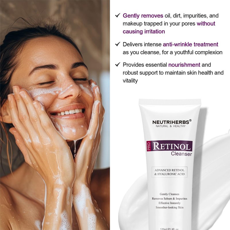 Neutriherbs Pro Retinol Cleanser gently removes oil, dirt, impurities, and makeup trapped in your pores for a fresh feeling. It enriches skin with Retinol & Hyaluronic acid, leaving skin looking healthy & youthful throughout the day. - What is this retinol cleanser for - All skin types, especially those with Anti-aging needs. But don't use it during pregnancy or while breastfeeding. - Texture - Very creamy and lush in texture with rich and exquisite foam, packed with moisturizing ingredients, and, when applied to your face, they whip into a smooth creamy lather. Foam retinol cleanser work gently without stripping your skin of their natural oils as theyβre designed to be very gentle and very moisturizing.