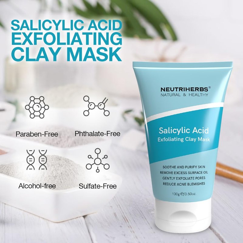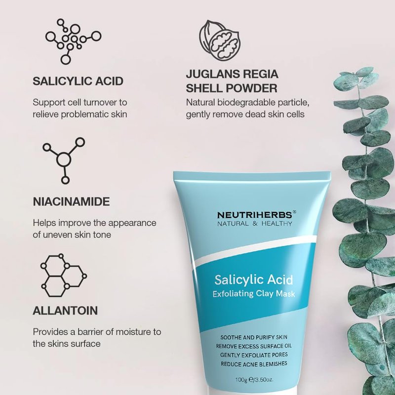 Neutriherbs Salicylic Acid Clay Mask, Hyaluronic Acid Clay Mud Mask, Purify Skin, Remove Dead Skin And Unclogged Pores, Face Mask For Oily & Acne Prone Skin - 3.5 Oz