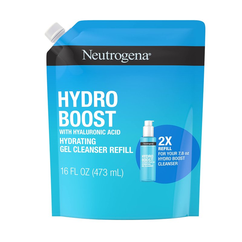 - 16-fluid ounce refill pouch of Neutrogena Hydro Boost Daily Hydrating Facial Cleansing Gel to boost skin's hydration for soft, supple skin