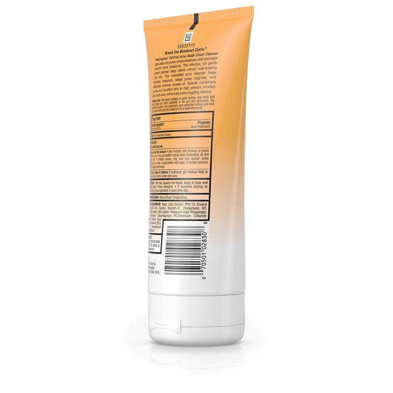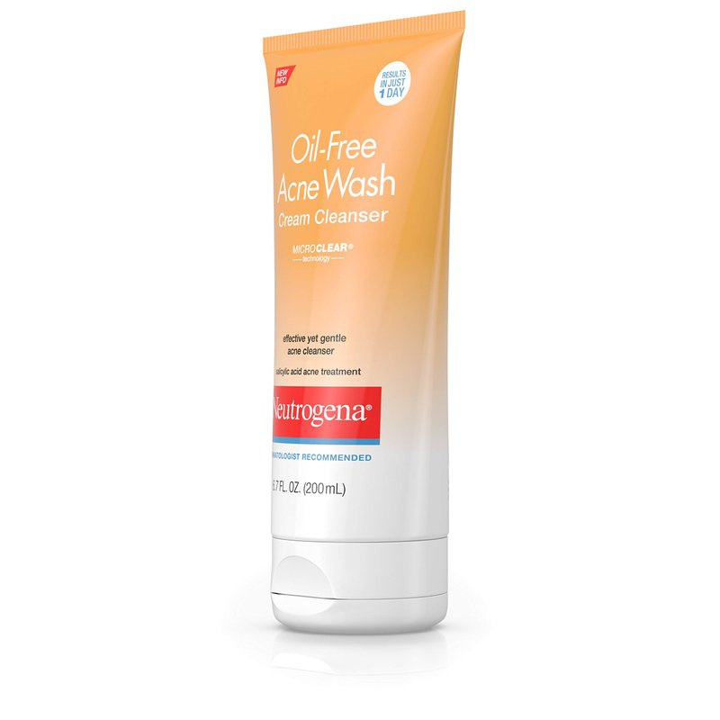 - 6.7-fluid ounces of Neutrogena Oil-Free Acne Wash Cream Cleanser with salicylic acid acne medication works to gently cleanse skin by effectively removing dirt and excess oil