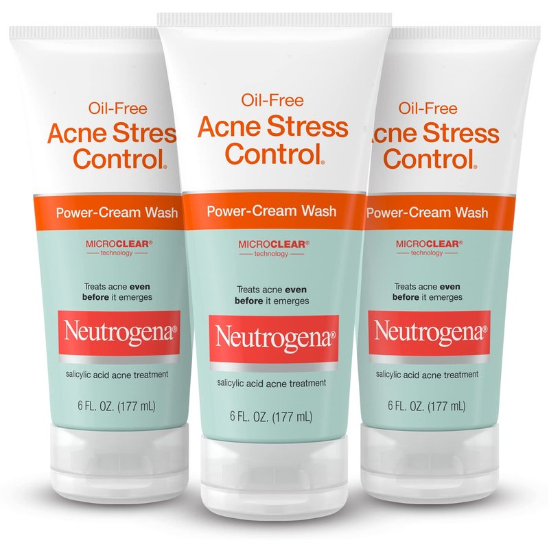 - 4.2-fluid ounce tube of Neutrogena Oil-Free Acne Stress Control Power-Cream Face Wash with salicylic acid acne medicine, for healthier looking skin