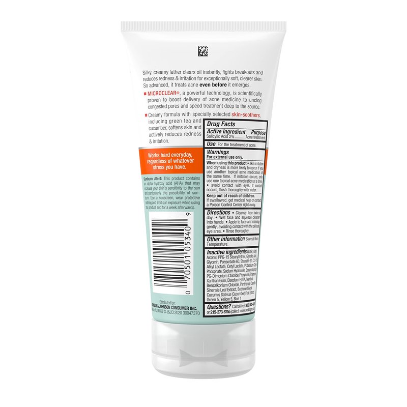- Facial cleanser formulated with salicylic acid acne medicine, a proven acne-fighting ingredient to help clear acne and MicroClear Technology, a technology shown to boost delivery of acne treatment to the source of breakouts