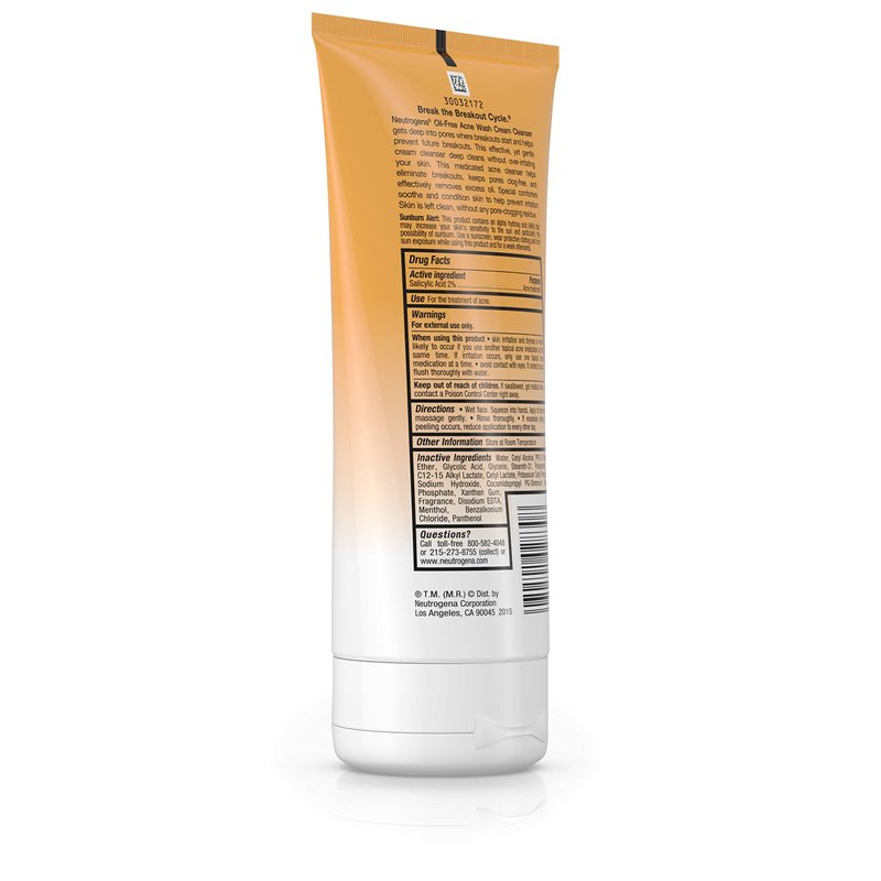 Neutrogena Oil-Free Acne Wash Cream Cleanser, 6.7 Fluid Ounce