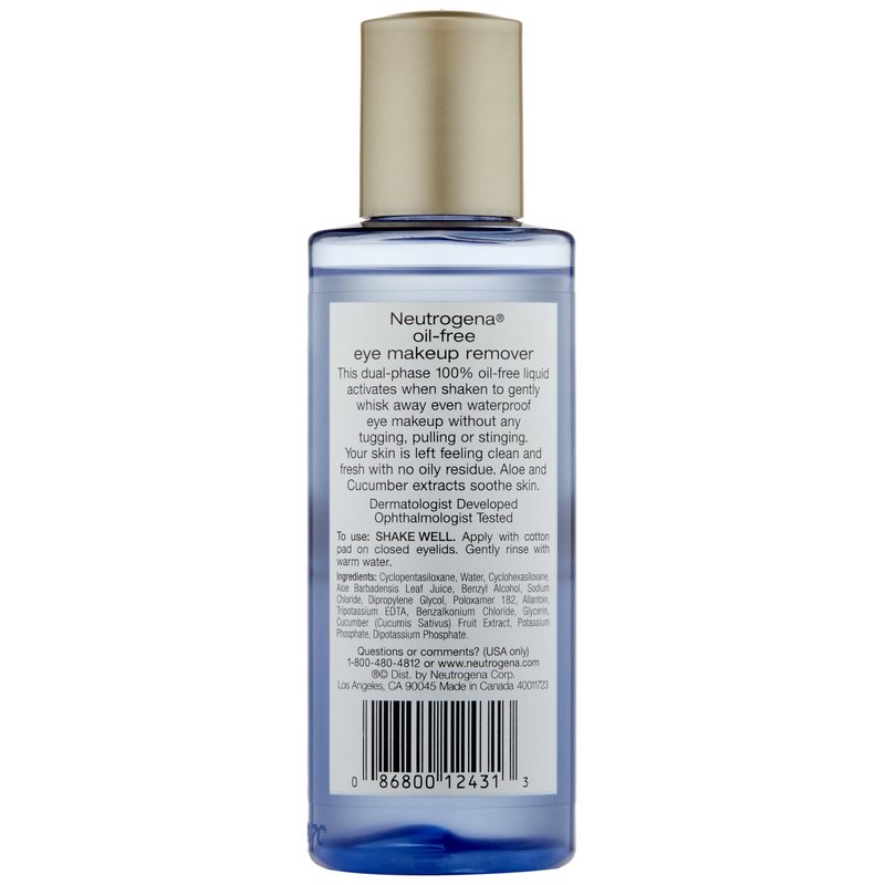 - 3.8-fluid ounces of Neutrogena Oil-Free Liquid Eye Makeup Remover Solution to gently remove eye makeup without pulling or tugging