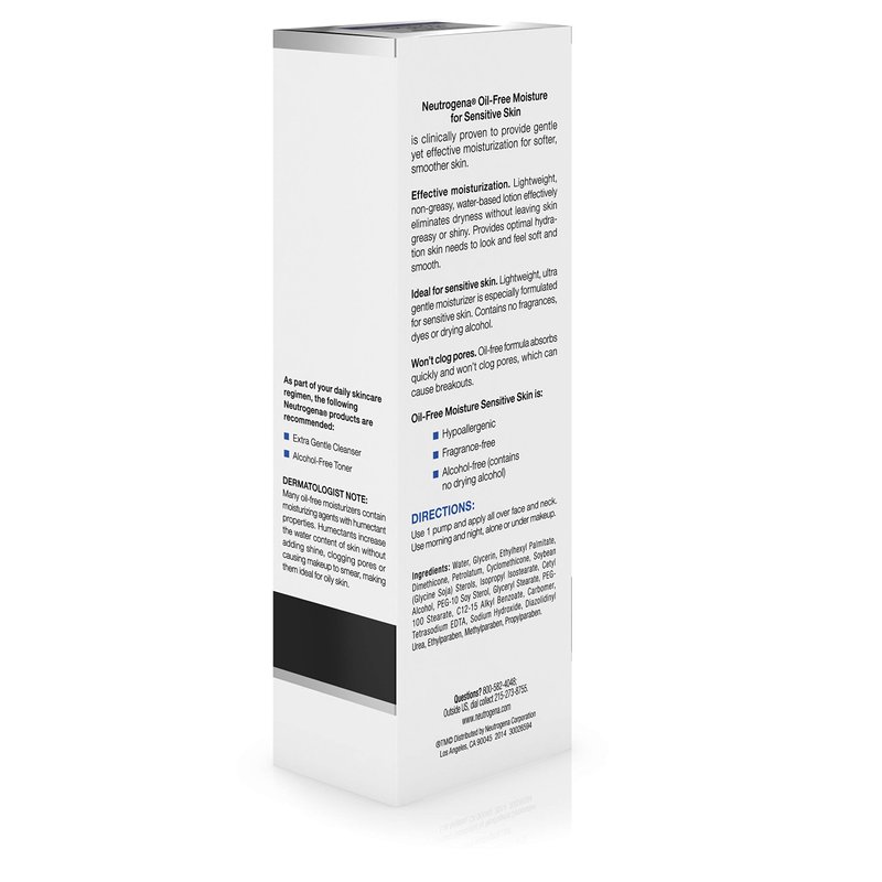 - 4-fluid ounce bottle of Neutrogena Oil-Free Facial Moisturizer for sensitive skin featuring a lightweight and ultra-gentle formula that hydrates and nourishes skin