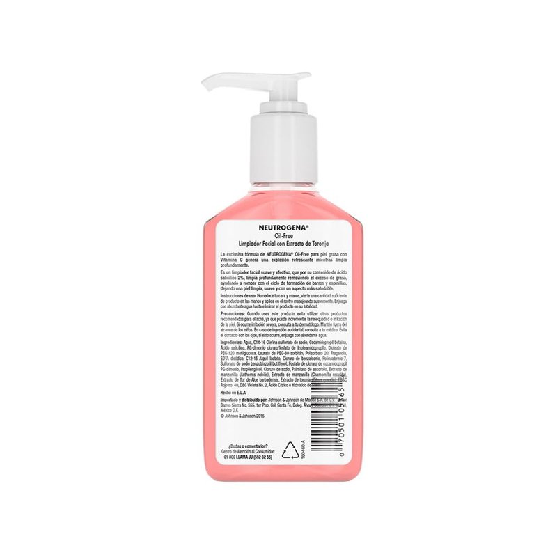 - 6-fluid ounce pump bottle of Neutrogena Oil-Free Acne Liquid Facial Cleanser with 2% salicylic acid to treat acne and prevent future breakouts, revealing clearer skin in just 1 week