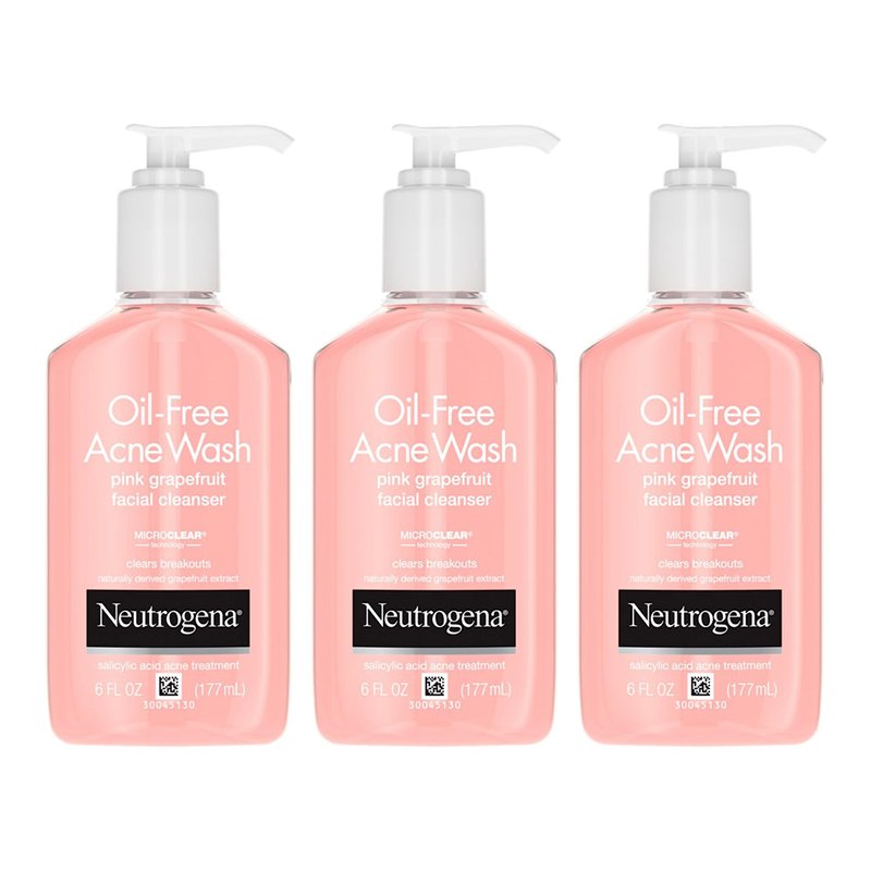 Neutrogena Oil-Free Pink Grapefruit Pore Cleansing Acne Wash and Daily Liquid Facial Cleanser with 2% Salicylic Acid Acne Medicine and Vitamin C, 6 fl. oz (Pack of 3)