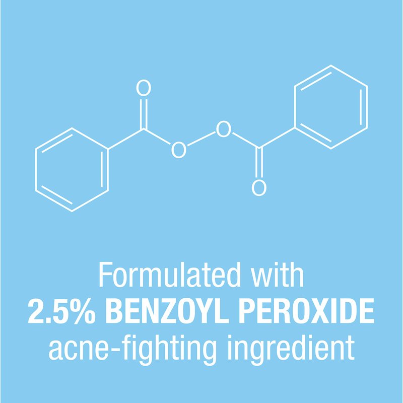 - This acne treatment is formulated with 2.5% benzoyl peroxide acne medicine, to help treat and prevent acne
