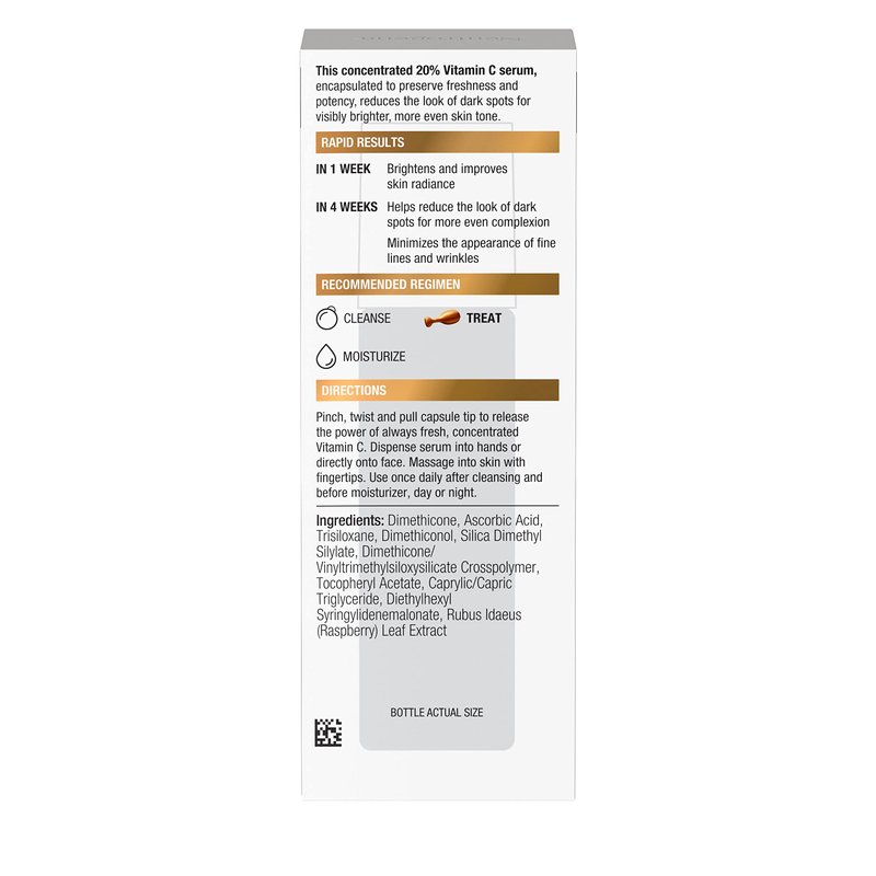 - Encapsulated to preserve the freshness & potency of 20% Vitamin C, this rich serum reduces the look of dark spots for visibly brighter, more even skin tone