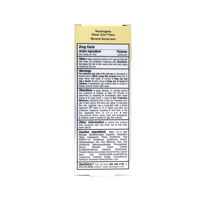 Neutrogena Sheer Zinc Dry-Touch SPF 50 Face Sunscreen, 2 Fluid Ounce -Pack of 3 (Package May Vary)