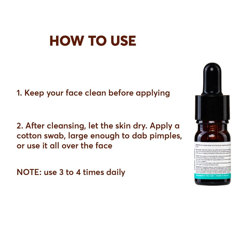 - [𝐇𝐨𝐰 𝐭𝐨 𝐮𝐬𝐞] Keep your face clean before applying Acne Serum. After cleansing, let the skin dry. Apply a cotton swab, large enough to dab pimples, or use it all over the face. Note, use 3 to 4 times daily.