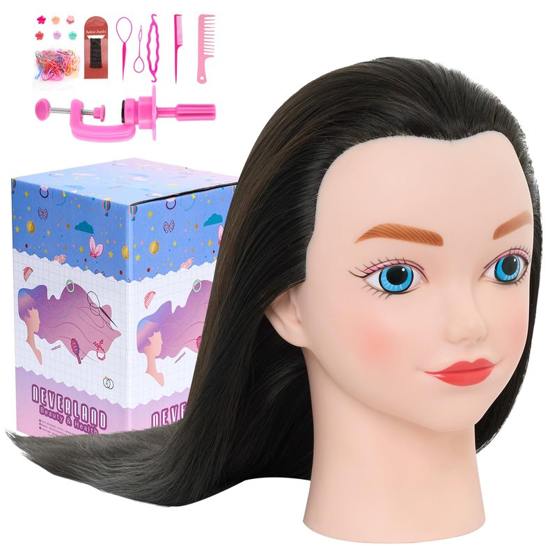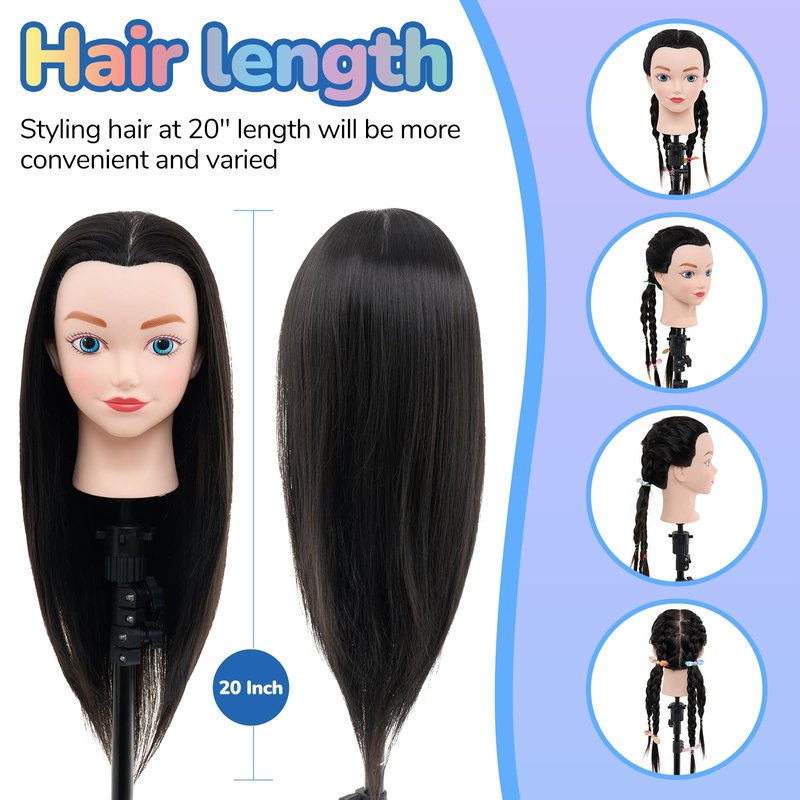- Appealing Design: This mannequin head design for your kids. Hair mannequin head With #1B Black hair and a length of 20 inches, Our mannequin head with hair serves for your hair styling practice