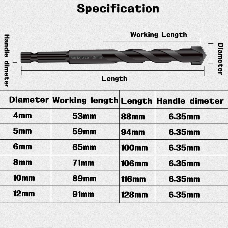 - ❺WIDELY USED: It can be used for drilling walls, bricks, wood, glass, tiles, stainless steel, concrete, etc. Remember to add Water or coolant when drilling.