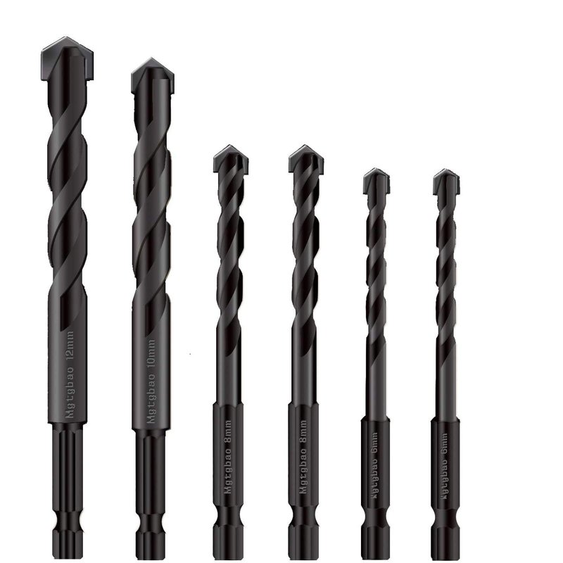 【 New 】6pcs Black Masonry Drill Bits Set, Mgtgbao Ceramic Tile Drill Bits Carbide Tip for Glass, Brick, Tile, Concrete, Plastic and Wood with size 6mm(1/4”), 8mm (5/16”), 10mm (3/8”), 12mm (1/2”).