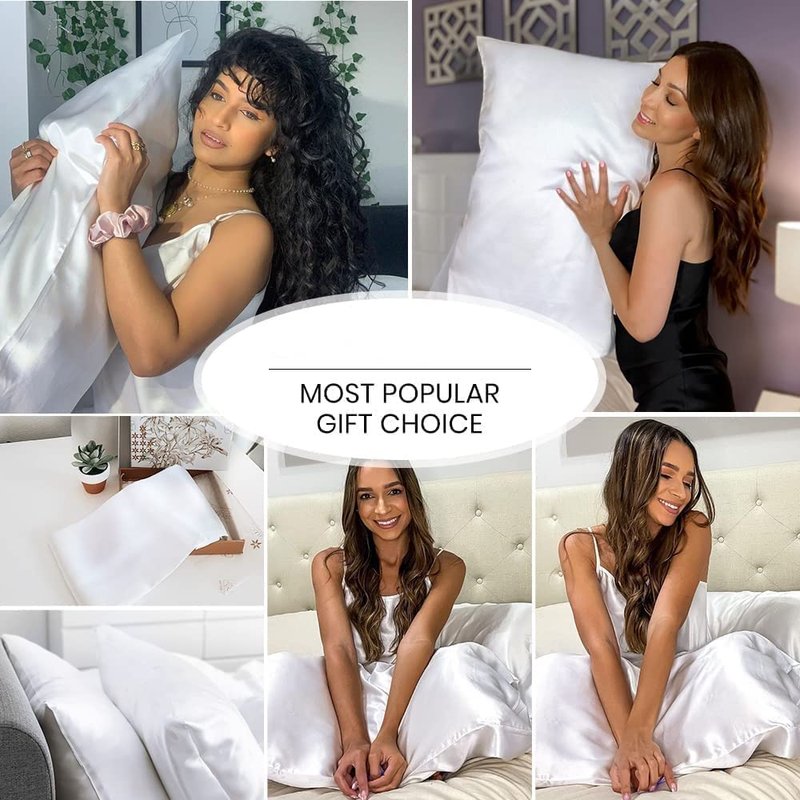 Elevate Your Beauty Sleep: This 100% polyester satin pillowcases , eye mask and scrunches protect delicate facial hair from scratches, creases and tugs, helping to reduce split ends and ensuring a night of restorative beauty sleep. Leave Skin Hydrated Experience the next generation of revolutionary fabric, highly advanced satin fabric. While other materials may tug at your hair follicles and strip your skin of natural, important oils, satin isn't as drying as cotton. Satin is like a godsend for your skin. your skin of natural, important oils, satin isn't as drying as cotton. Exclusive Feeling: Envelope closure end design prevents your pillows from escaping during your sweet dream. No zipper, this pillowcase has an easy on and off design to bring you a unique and pleasant experience. Fresh and Modern Expression, even-textured satin pillowcases are both soft and durable, coaxing out a good night's sleep. Easy Care: High-quality satin is sturdier and more durable than silk pillowcases, which need professional care. Turn satin pillowcase inside out, place it inside a mesh laundry bag and wash with a mild detergent.