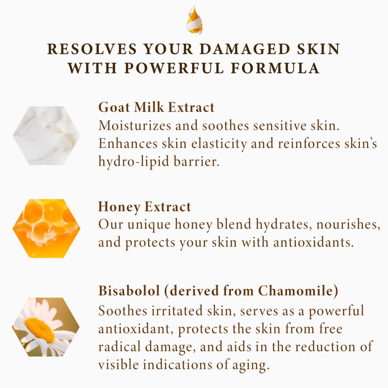 - 【GOAT MILK EXTRACT】Consists of antioxidants and vitamins that contribute to skins PH balance. Easier to be absorbed by the skin in comparison to cow’s milk, rich in well-balanced natural nutrition provides complete care for your skin.