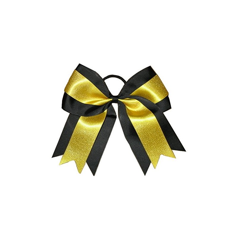 New "BLACK & YELLOW Glitter" Cheer Bow Pony Tail 7 Inch Girls Cheerleading Dance Practice Football Games Uniform Competition Grosgrain Ribbon