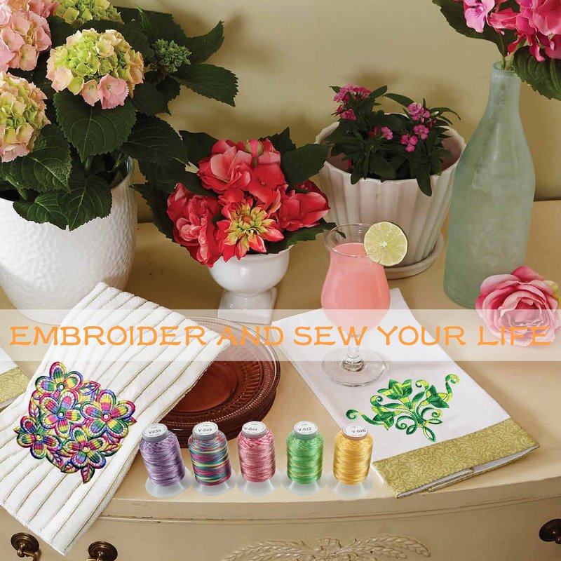 - ★ PERFECT WEIGHT & LENGTH - Each spool is 120D/2 (40WT) and 500M (550Y) length, which makes these spools of variegated colors Polyester Embroidery Machine Thread ideal for all sort of your embroidery projects.