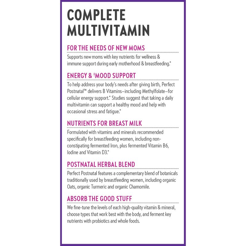 - FOR NEW & NURSING MOMS: Complete postnatal vitamins & minerals nourish your body after giving birth, supporting lactation, cellular energy production & mood*