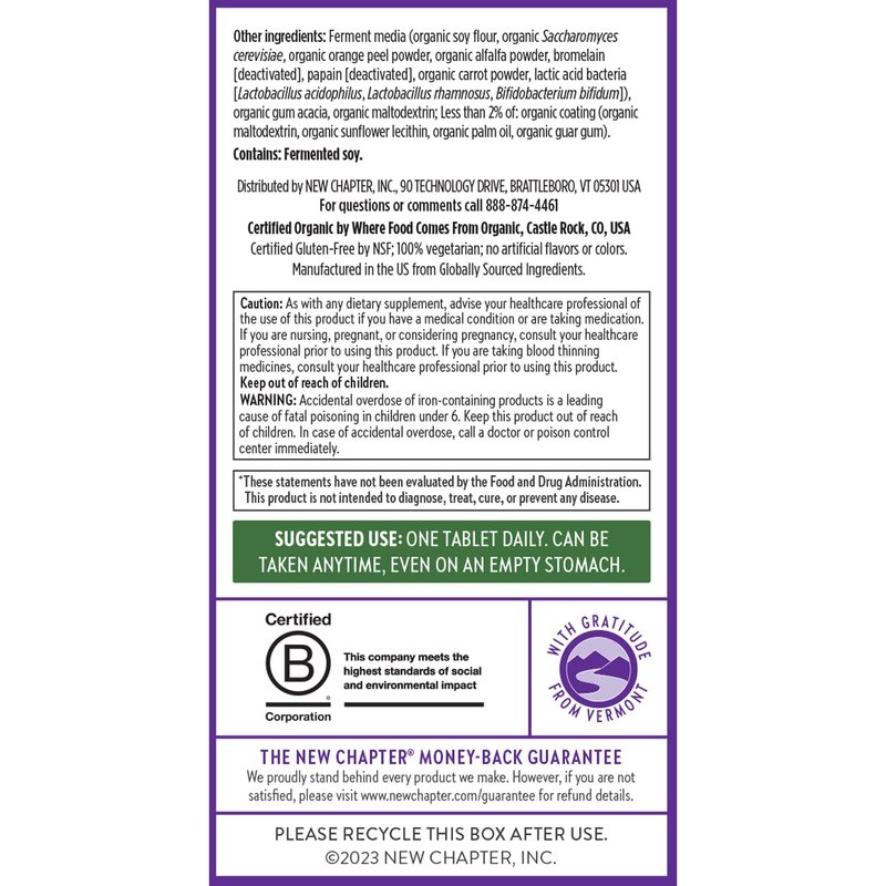 - THE FERMENTED ADVANTAGE: New Chapter ferments key vitamins and minerals with probiotics and formulates our blends for optimal absorption