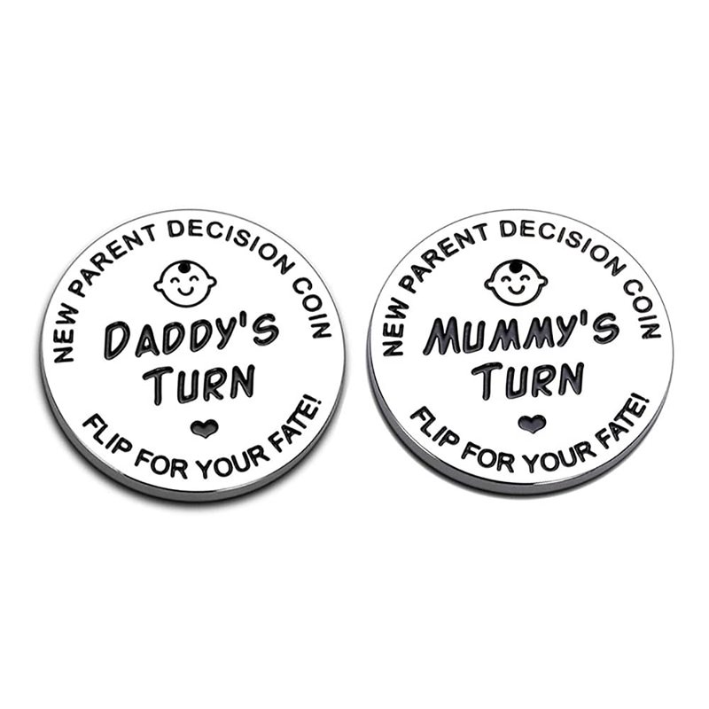 - Funny New Parents Decision Coin: Our double-Sided decision coin is engraved with Daddy's Turn on one side, the other side is engraved with Mummy's Turn. Perfect gift for new parents to help them decide who changes the diaper in the middle of the night