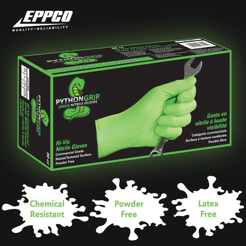NEW! Eppco PythonGrip Hi-Vis Green Nitrile Gloves - Size L 100 count box
