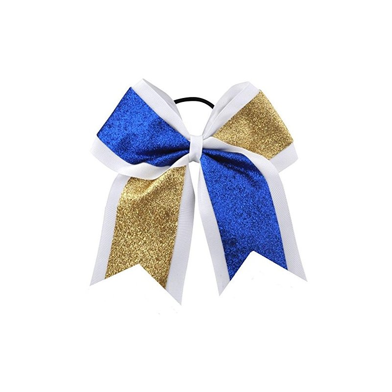 New "GLITTER DUO Blue & Gold" Cheer Bow Pony Tail 7 Inch Girls Hair Bows Cheerleading Dance Practice Football Games Competition Birthday Grosgrain Ribbon
