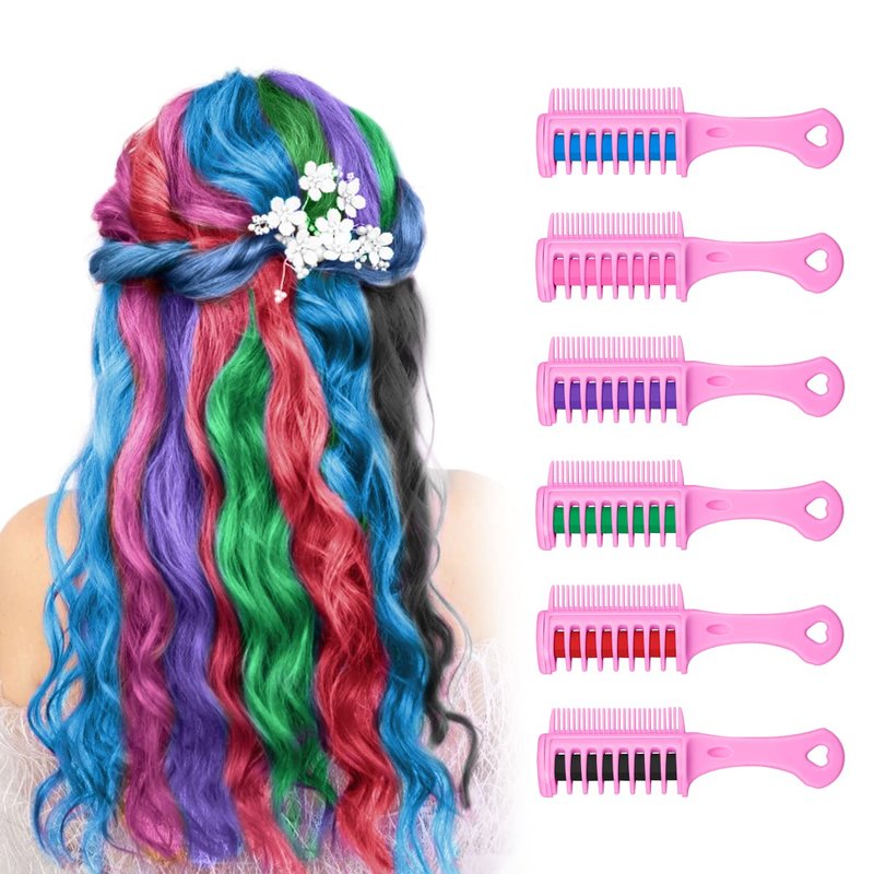 New Hair Chalk Comb for Girls Kids with light hair, Washable Temporary Hair Color Dye for Kids Age 5 6 7 8 9 10+ Birthday Gift Cosplay DIY, Halloween (Blue, Pink, Purple, Green, Red, Black)