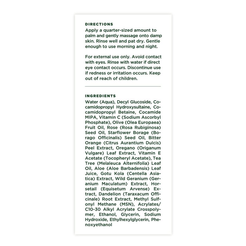 - Make Vitamin C Part of Your Daily Routine: Apply quarter-sized amount on to palm and gently massage onto damp skin; Rinse well and pat dry; gentle enough for morning and night use