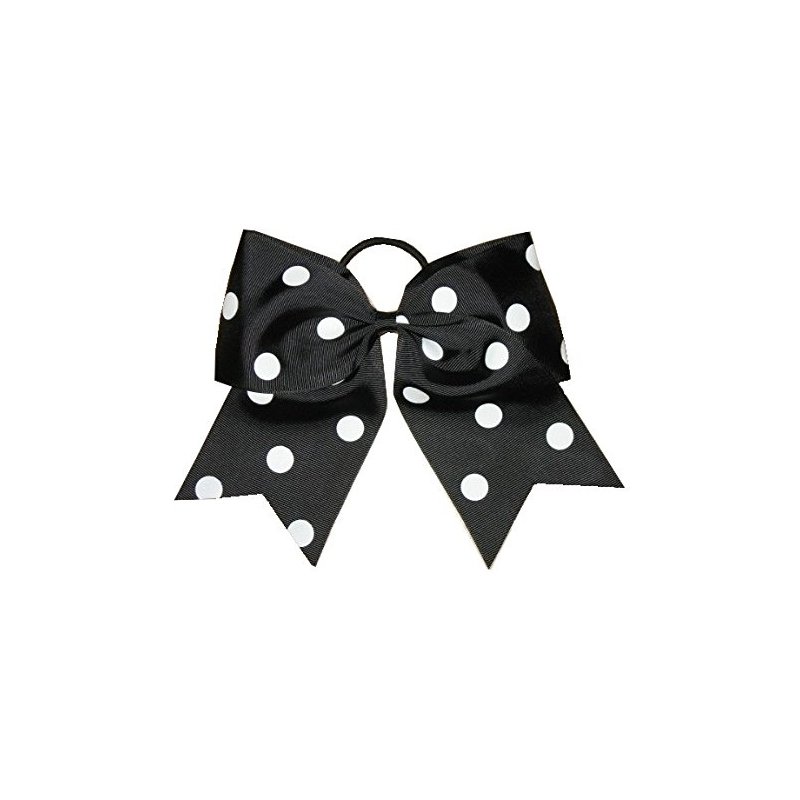 NEW "POLKA-DOT Black" Cheer Bow Pony Tail 7 Inch Girls Hair Cheerleading Practice Football Games Dance Uniform Hairbow Grosgrain Ribbon