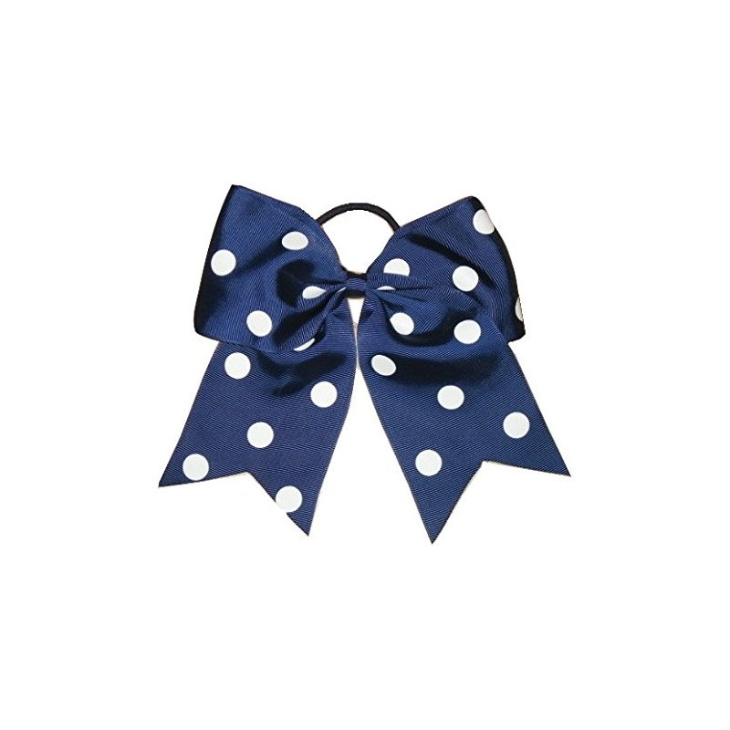 NEW "POLKA-DOT Navy Blue" Cheer Bow Pony Tail 7 Inch Girls Hair Cheerleading Practice Football Games Uniform Dance Hairbow Grosgrain Ribbon