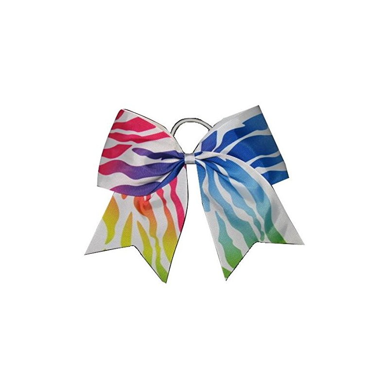 NEW "RAINBOW ZEBRA" Cheer Bow Pony Tail 7 Inch Girls Hair Bows Cheerleading Practice Football Games Dance Uniform Hairbow Birthday Grosgrain Ribbon