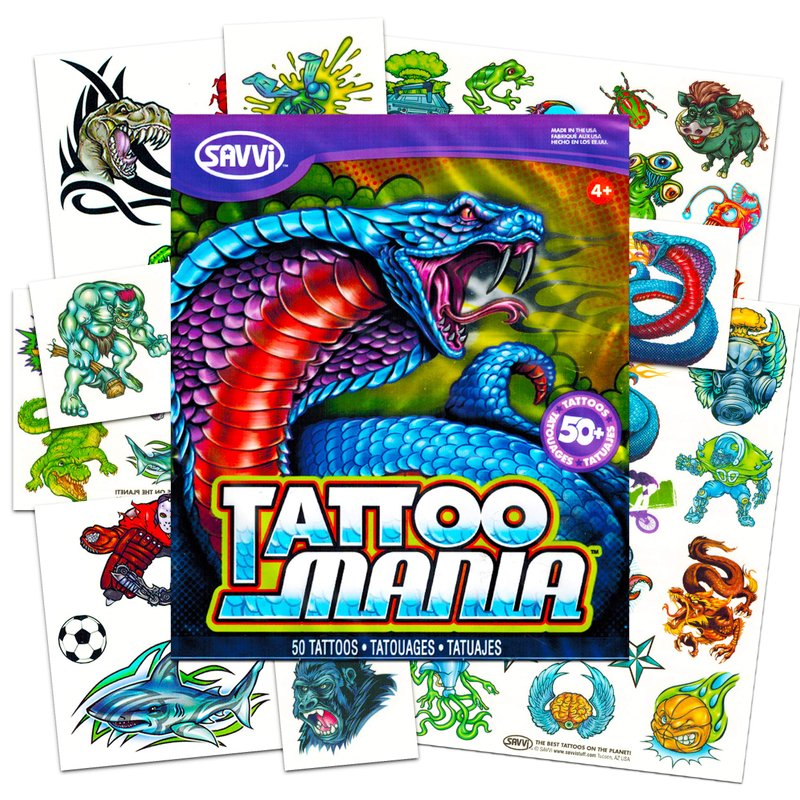 New School Temporary Tattoos for Boys Kids Adults -- 100 Bright and Bold Biker Tattoos with Monsters, Animals, Dinosaurs, and More (Party Supplies). New School tattoo pack contains 100 temporary tattoos on 12 sheets. Perfect to hand out or apply at costume parties. Perfect for temporary tattoo party supplies, party favors, motivational awards and more! Temporary tattoos for kids and adults alike. Colorful New School temporary tattoos featuring new school designs! Bulk quantity with value pricing. The perfect accessory for dress up parties and Halloween costumes!