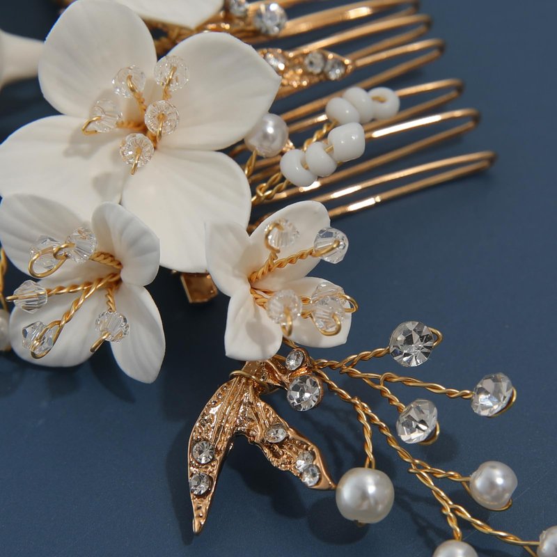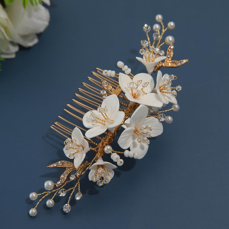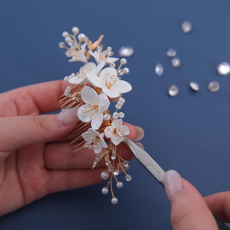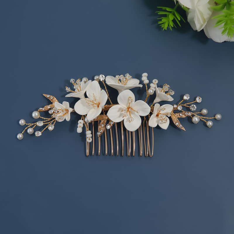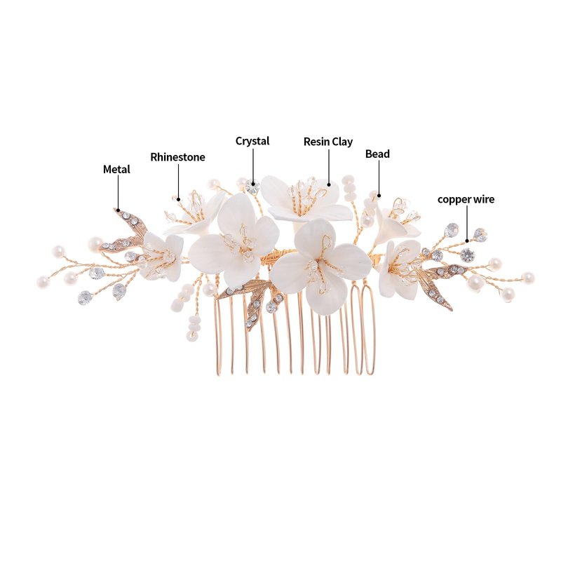 - ❀This wedding hair comb is made of a new polymer clay material, which is particularly excellent in terms of ductility, plasticity and functional shaping. It can not only be used to shape, but also after oven or low temperature oven firing can be formed, so that the flowers on our wedding hair accessories have no deformation, waterproof, sun protection, elastic, bright color, not broken and other characteristics.