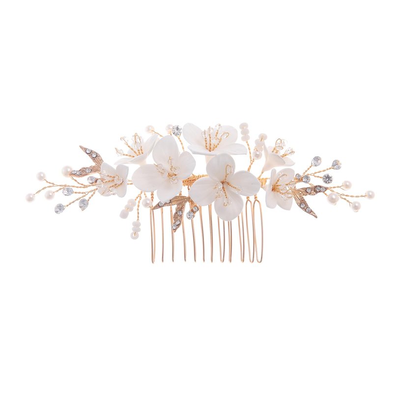 New Soft Material Polymer Clay White Flower Wedding Hair Accessories for Women Handmade Pearl Gold Wedding Hair Comb Bridal Jewelry