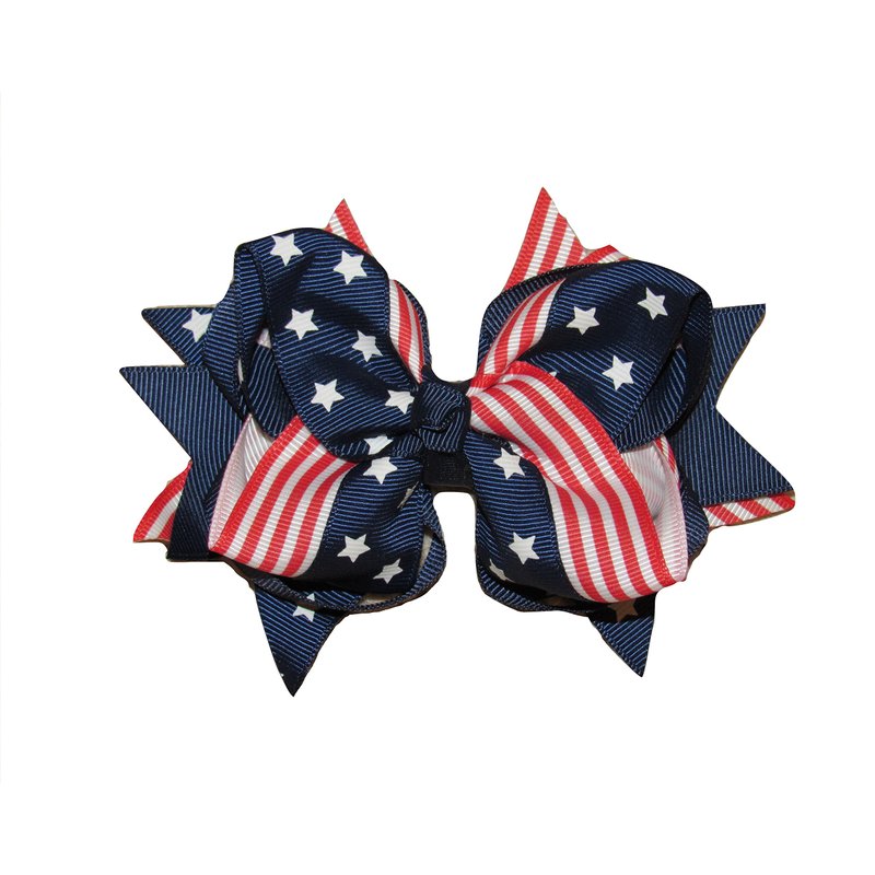 This listing is for a Boutique 4th of July Grosgrain Ribbon Hairbow! JUST PRECIOUS! These are hand-made by me! The Hairbow is made out of American Flag printed grosgrain ribbon with stars and red/white stripes printed on it! These Boutique Bows are approx. 3.5 inches long by 5 inches wide. The Bows are mounted on an Alligator Clip lined with a navy blue ribbon! Great for Pageants, 4th of July Parades, Memorial Day, Veteran's Day, Parties, Birthdays, Portraits, Christmas, and more! Check out my store for other hairbow styles!