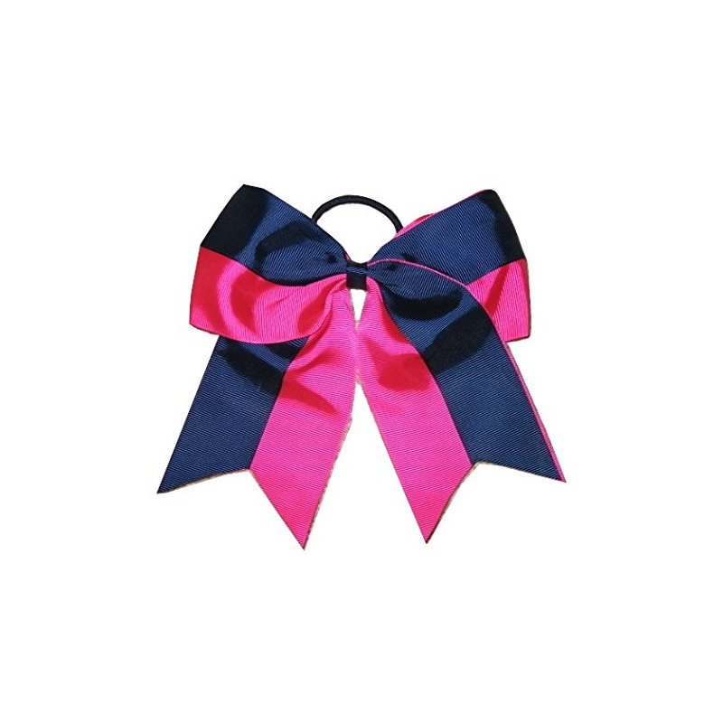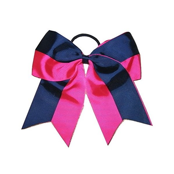 NEW "Two-Tone NAVY & PINK" Cheer Bow Pony Tail 7 Inch Girls Cheerleading Dance Practice Football Games School Uniform Competition Grosgrain Ribbon Elastic