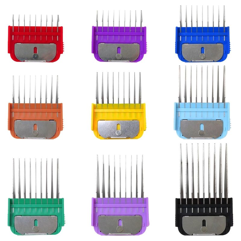 9 Color guide combs for easy identification, effortlessly glide through small, medium, and large-sized dogs and cat coats