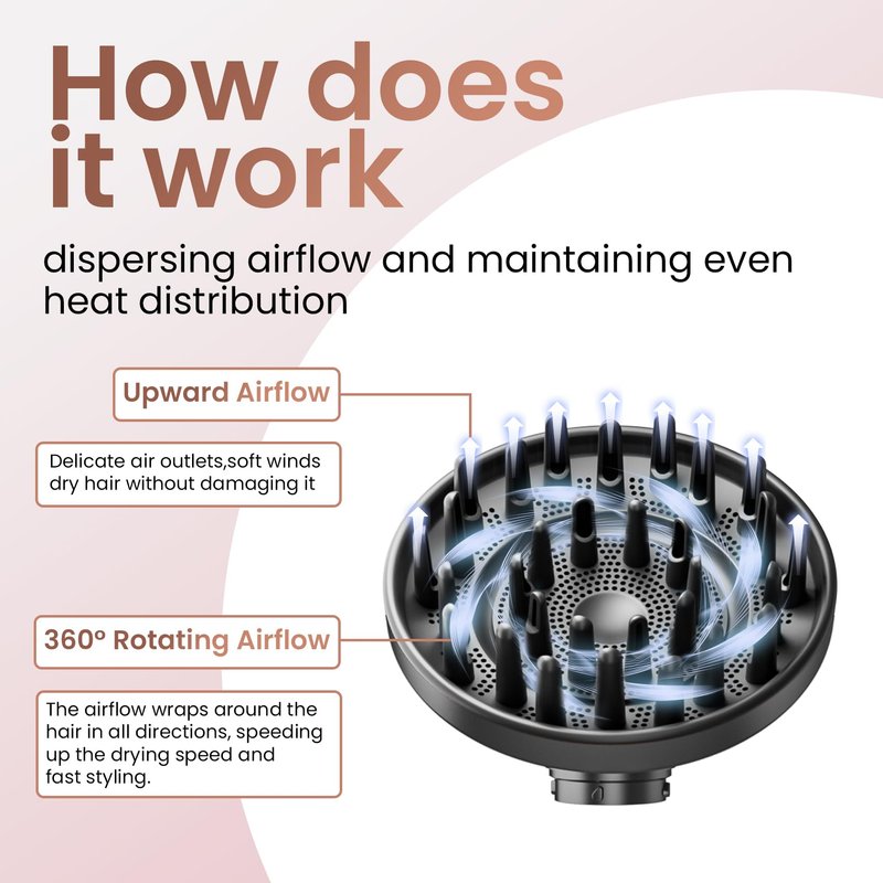 - 【Enhanced Diffuser Nozzle】Upgrade your hairstyling routine with our Enhanced Diffuser Nozzle—no adapter required. Enjoy smoother airflow, a gentle touch, and a polished look for salon-quality results at home. Its flexible, lightweight design allows for easy control of airflow, making it ideal for all hair types