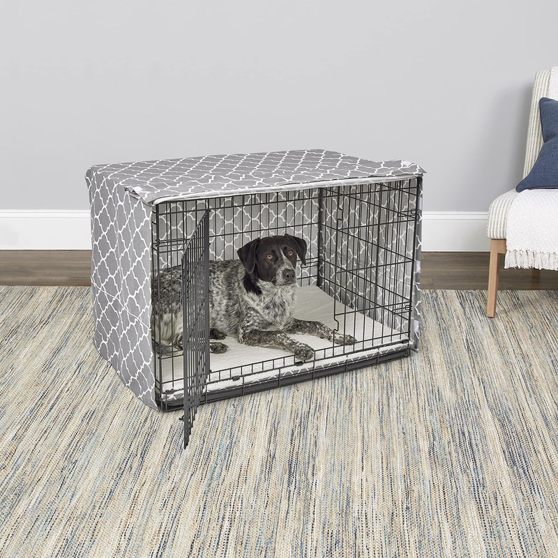 New World Pet Products Dog Crate Cover Featuring Teflon Fabric Protector, Dog Crate Cover Fits New World & Midwest 36-Inch Dog Crates, Light Gray Designer Pattern