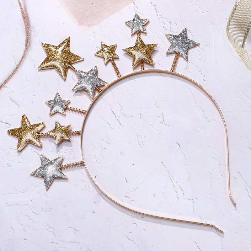 - Star Headband for Women :Ring in the new year in stellar fashion with this gold silver metal headhoop adorned with sparkly gold, silver, and black stars of varying sizes ! Be the star of the New Year's Eve or holiday party .The stars are covered in metallic glitter that shimmers and shines from every angle.the top display stars that bounce and sway with the slightest movement. Brighten up any New Year's party!