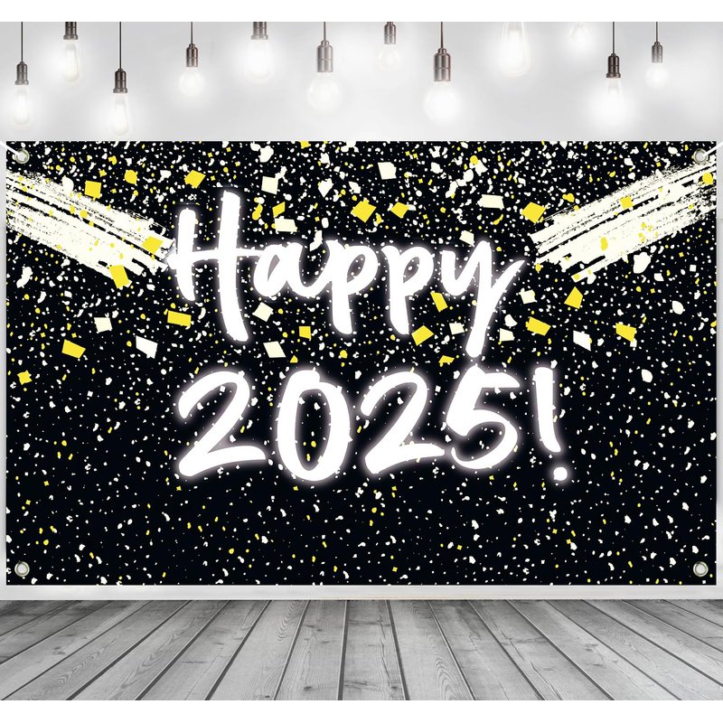 - 🎆Unique New Year Decorations: Looking to welcome 2025 with an elegant and bright Happy New Year backdrop? Look no further! Our 2025 Happy New Year banner is the perfect choice for your New Year decorations. The fluorescent "Happy 2025" text, black background and gold ribbon accents creating a visually appealing display that will catch the attention of anyone passing by, will set the stage for a grand new year party atmosphere, ensuring your new years eve party supplies 2025 is full of vibrant.