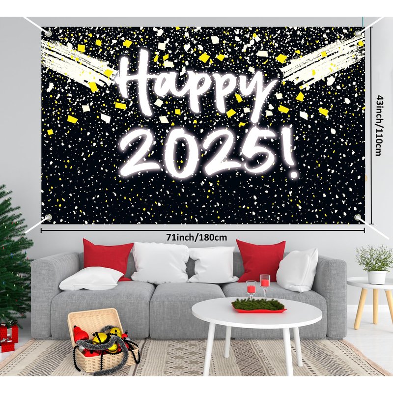 - 🎇Easy to Decorate:The New Year backdrop features holes at all four corners and comes with a sturdy 10-meter rope, making it incredibly easy to hang wherever you desire. Convenient to use and decorate your New Year's party, you can complement the new year banner with balloons, pom-poms, swirls, and other New Year decorations to create a unique 2025 New Year decorations theme. Enhance the atmosphere of your new years eve party supplies celebration and make the background stand out.