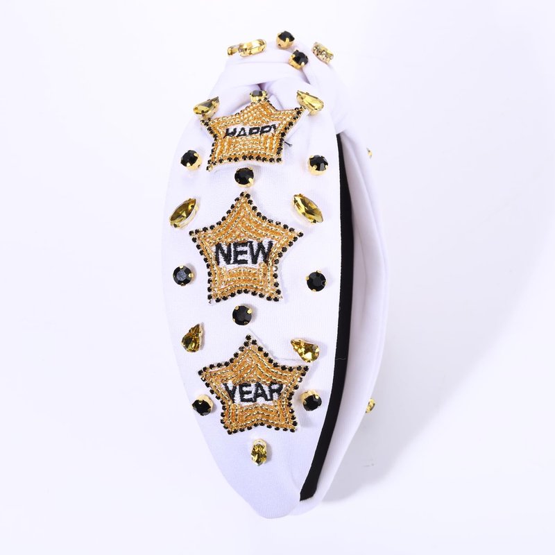 - ♥ Happy New Year Headbands -- New Year's Eve is such a time for us to reflect on the previous 12 months and look with hope to the year ahead! Get ready to ring in the new year in style with our jeweled New Year’s Eve Headbands. Features black wide top knot headband with hand beaded star/letter 'NYE'/words 'New Year' embellished, sparkly baroque crystal and stars adorned. The perfect New years accessories to help complete your New Year outfits and make your New Year's celebration a festive one!