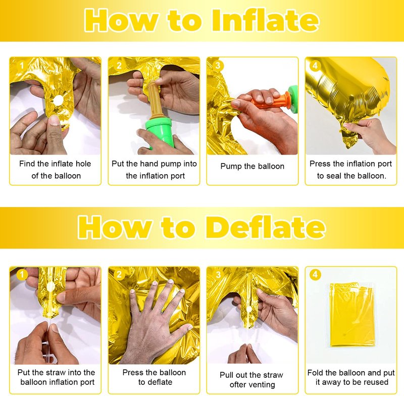 - Repeated Use: The new year 2025 balloons set contains a straw that can be used to deflate the foil balloon, simply insert the straw into the valve and press gently until the gas is completely expelled. After use, it can be folded and stored for reuse.