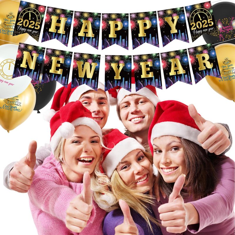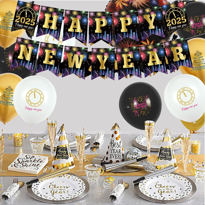 New Years Eve Party Supplies 2025 Happy New Year Decorations Firework New Years Banner New Years Balloons for New Year's Eve Party Supplies