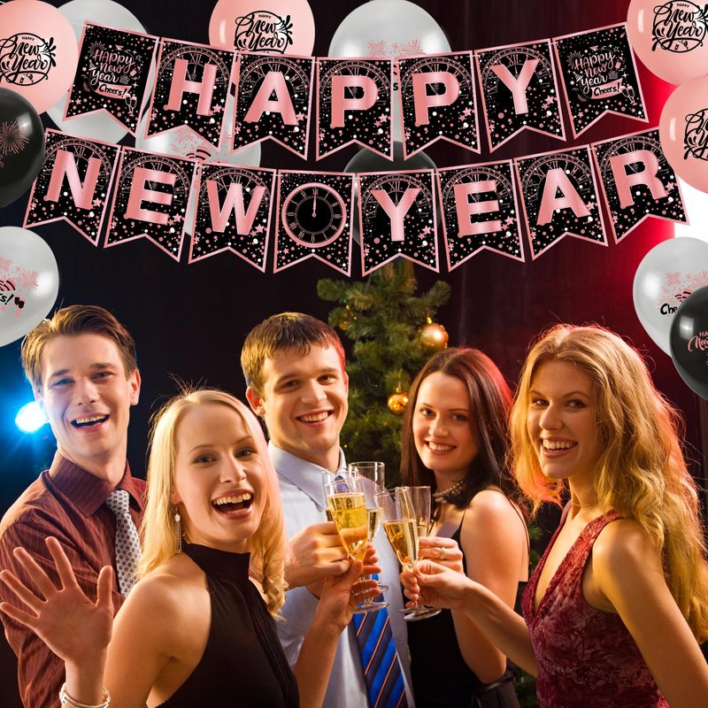 - Rose Gold Design: Rose Gold font Happy New Year,golden balloons add a festive atmosphere to your home, fill your home with a New Year vibe, make a remarkable effect in your new year eve party.