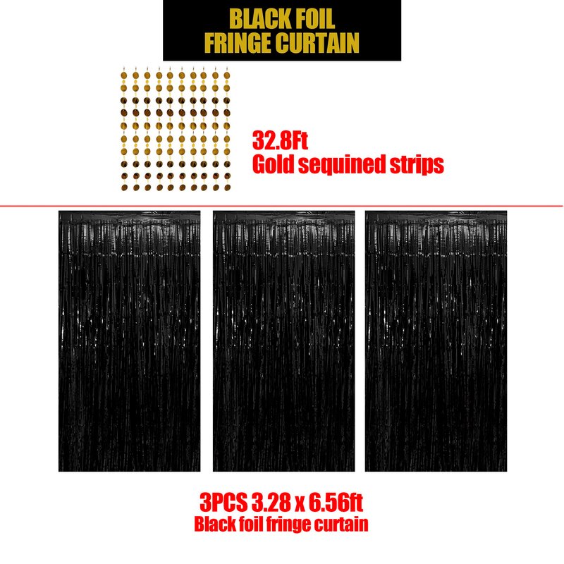 3pcs*black foil fringe curtain(each size:W:3.28ft,H:6.56ft)